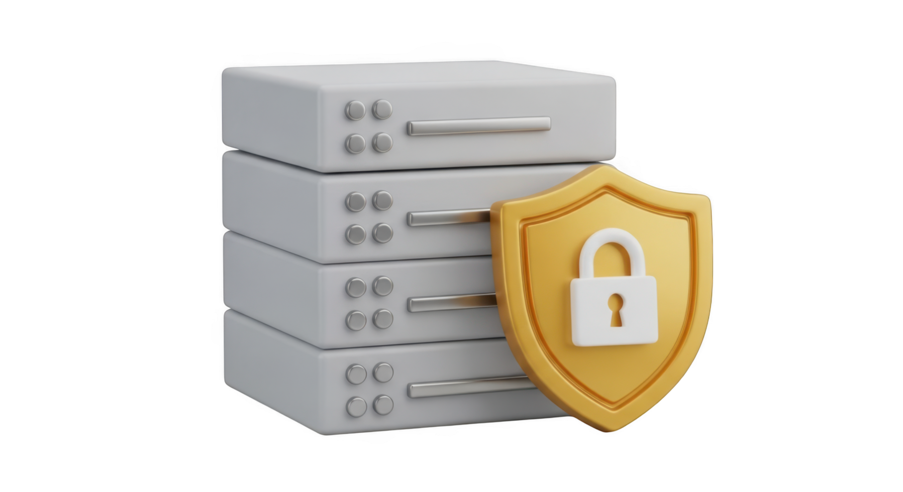 Server stack with a shield and padlock isolated on transparent background Free PNG
