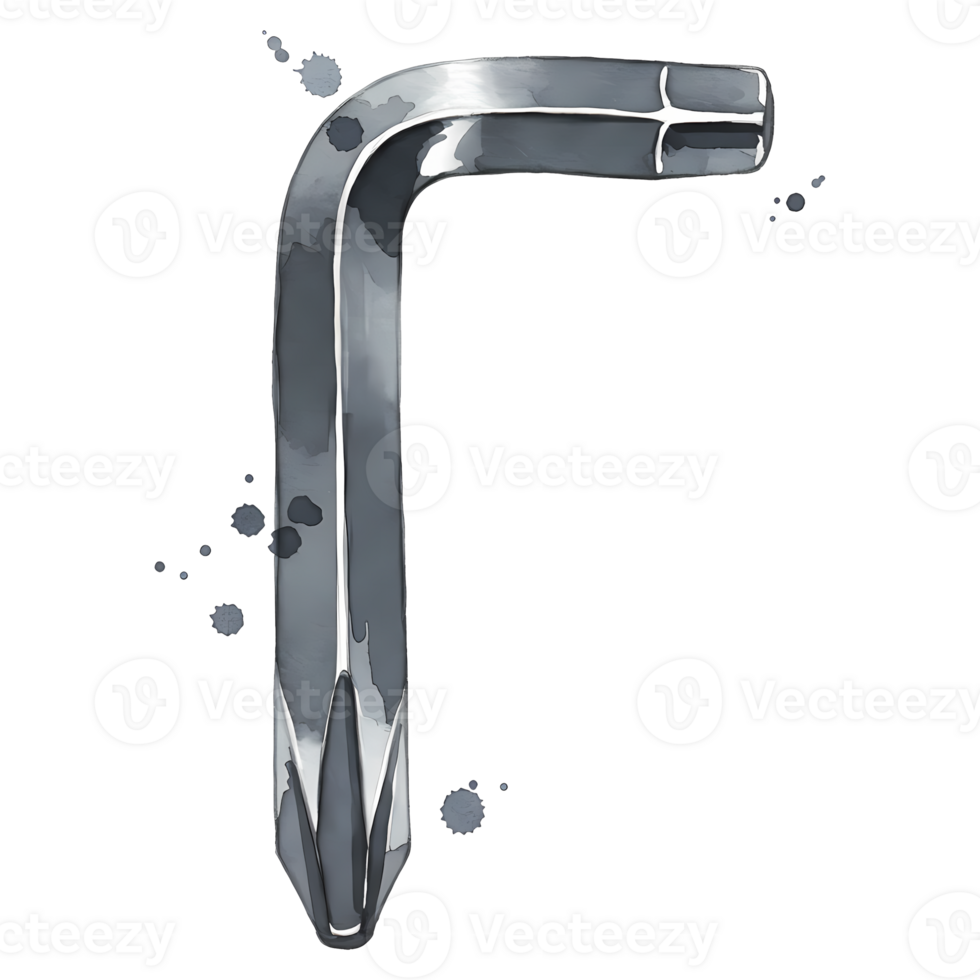 Isometric view of a metal l shaped screwdriver with a cross shaped head isolated on a plain setting on transparent background Pro PNG
