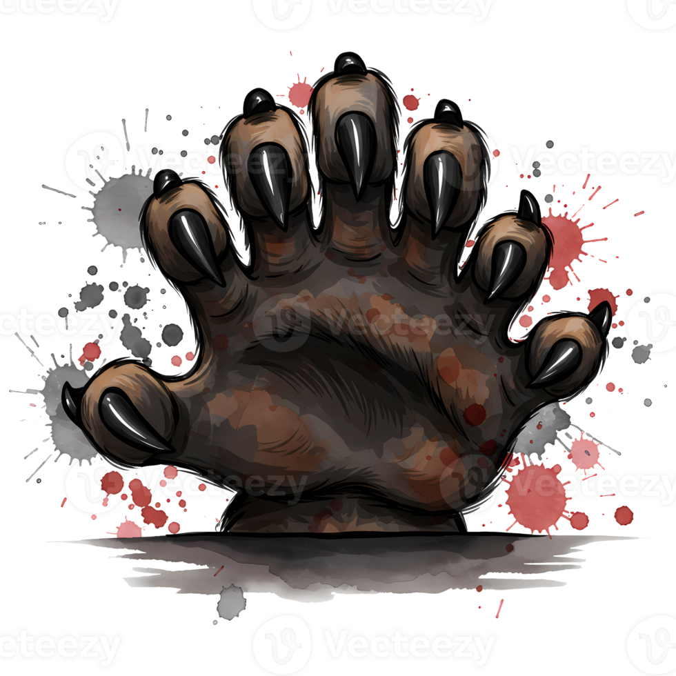 A skeletal hand with visible bones against a pixelated and neutral color splatter like background art on transparent background Pro PNG