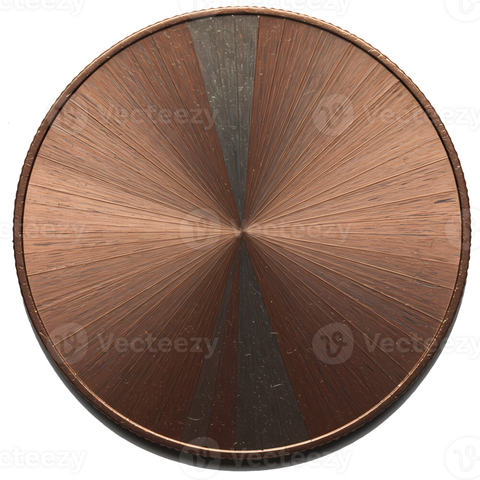 A copper coin with radial pattern emanating from the center and a gray stripe on the top side on transparent background Pro PNG