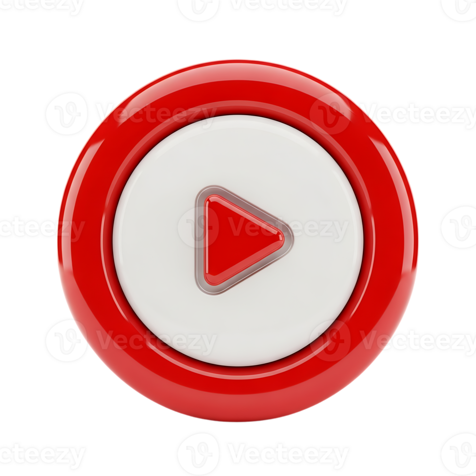 3d icon of a red play button with a circular frame isolated on transparent background, ideal for media player applications Pro PNG