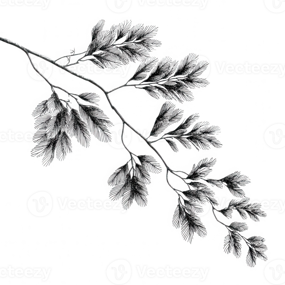 Delicate fine branch with detailed leaves in monochrome style showing natural texture and intricate pattern on transparent background for design use Pro PNG