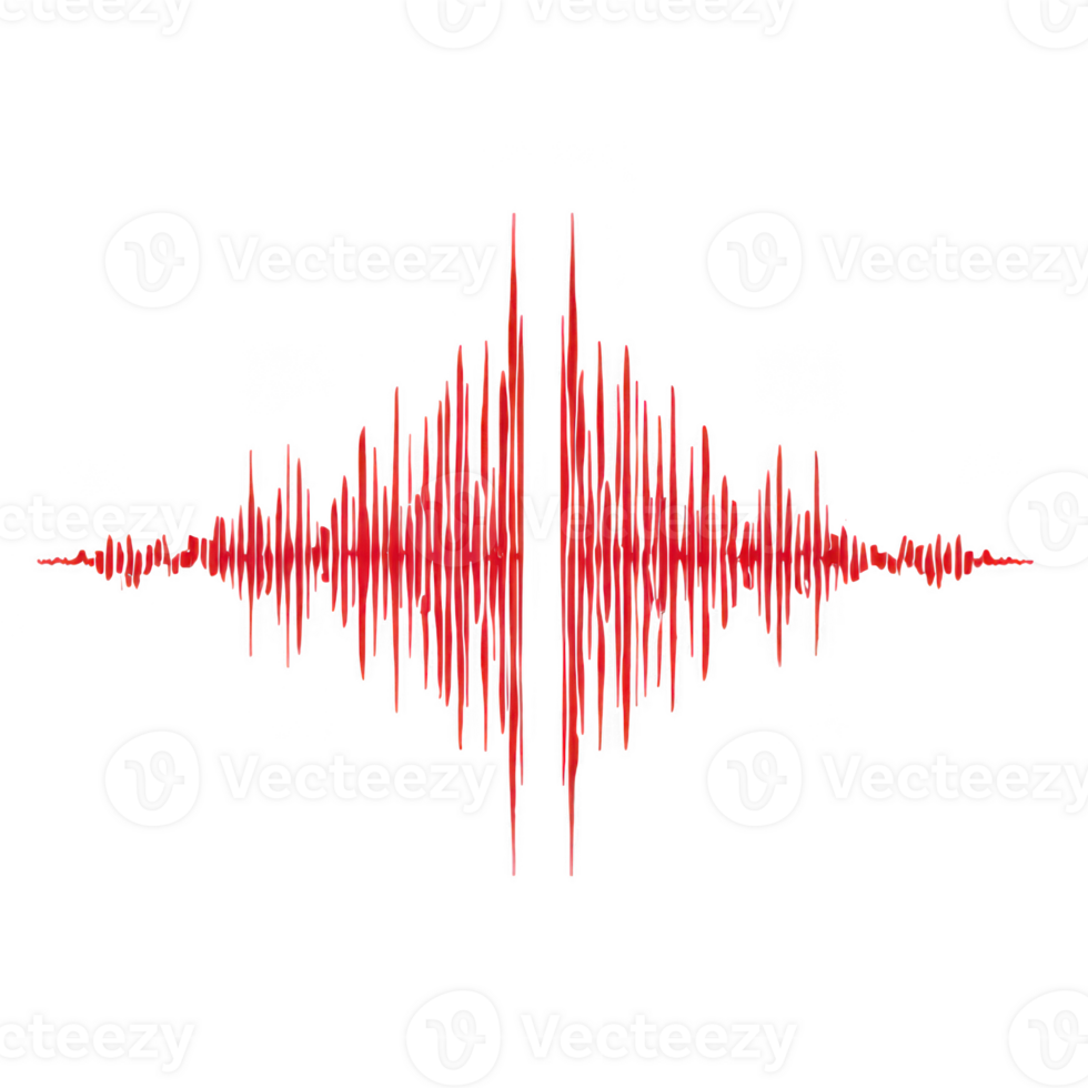 Red sound wave graphic with sharp peaks and valleys on transparency background, representing audio frequency or voice signal visualization in dynamic and energetic style Pro PNG