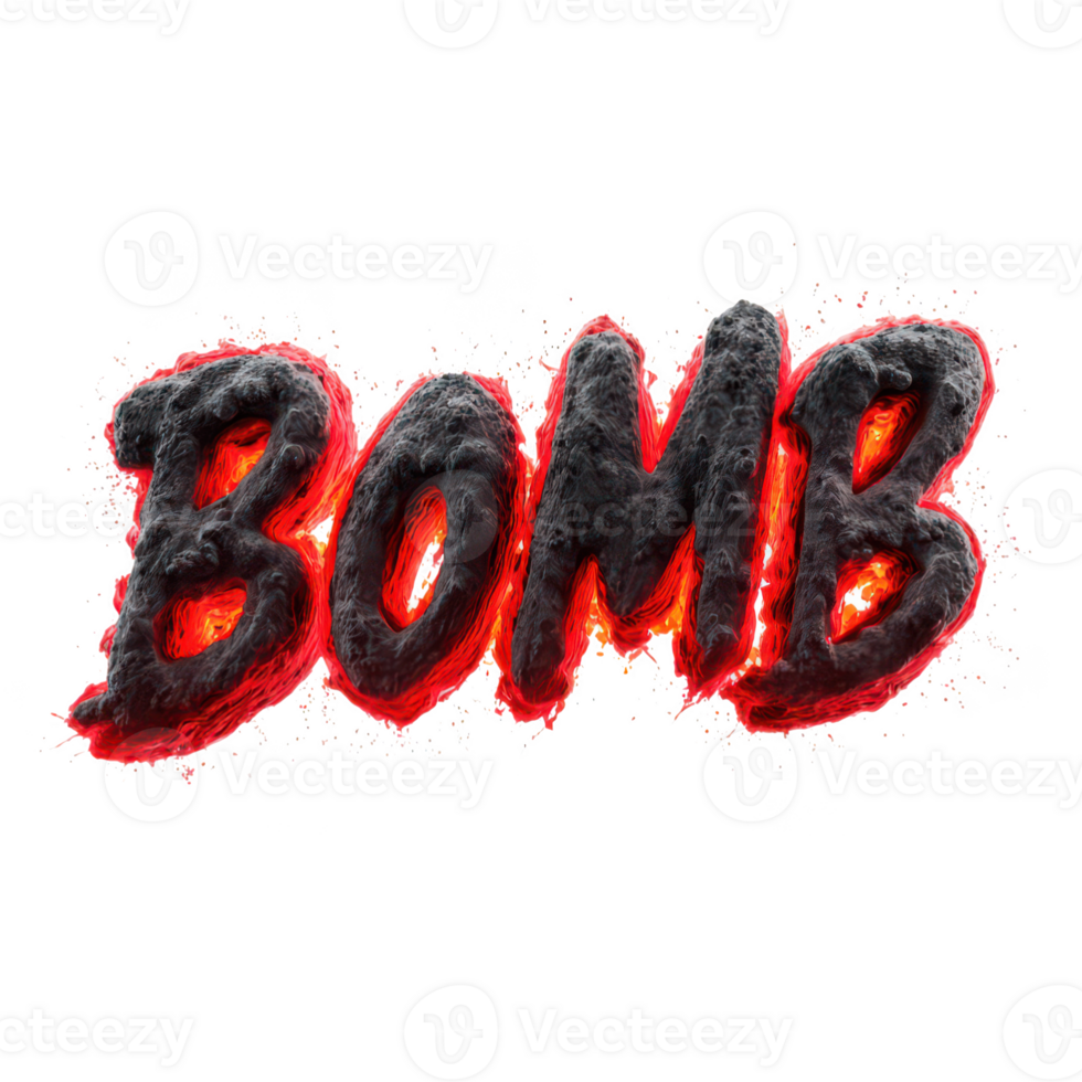 Explosive text design with rough black stone letters glowing with fiery red and orange light, creating dramatic and intense visual effect on transparent background Pro PNG