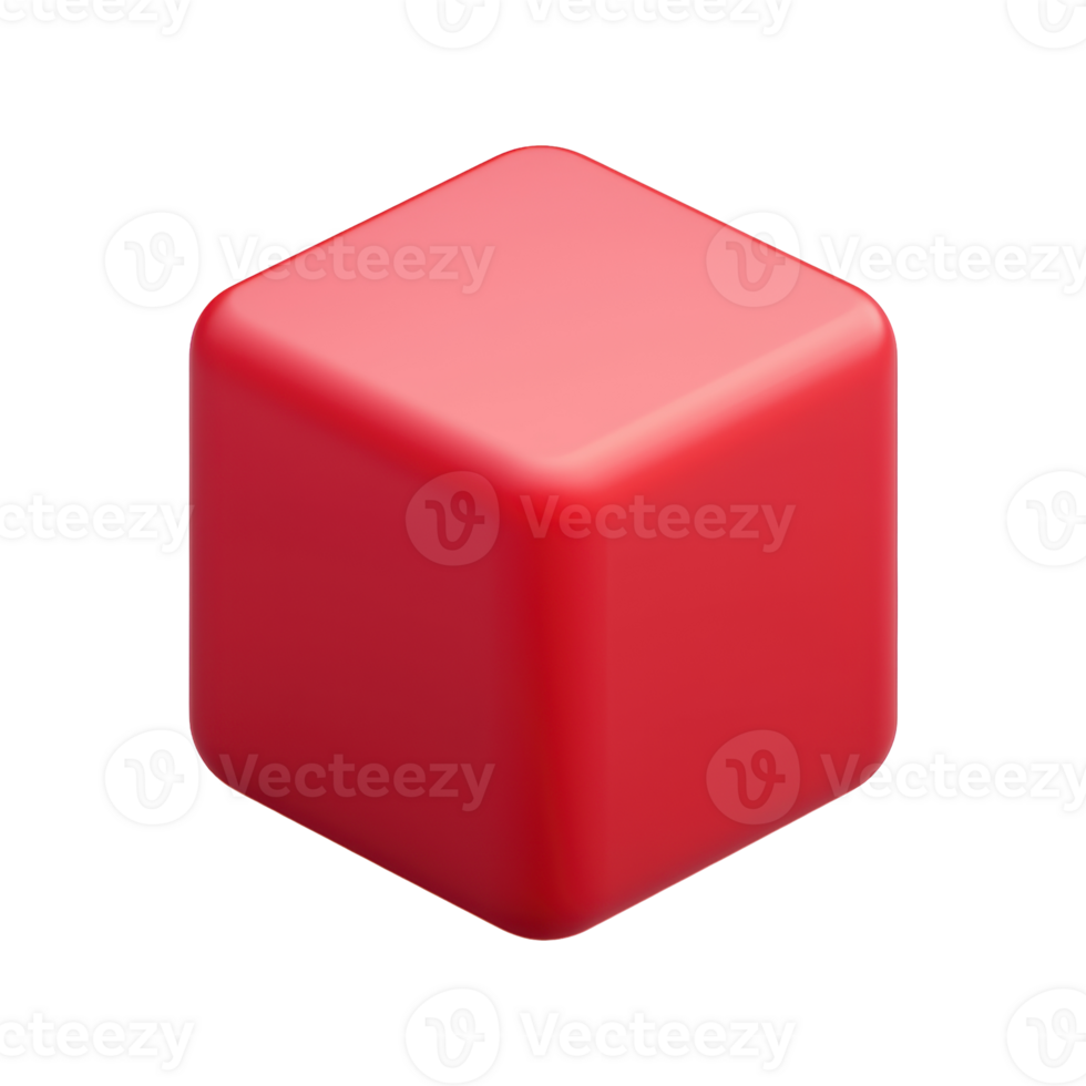 Red 3D Cube With Rounded Edges. Minimalist Design And Geometric Shape. Isolated On Transparent Background Pro PNG