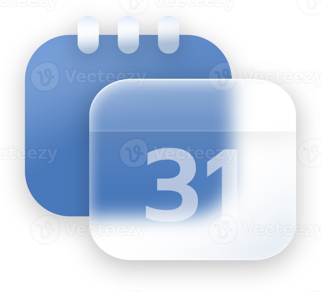 Calendar button and icon elements, glassmorphic transparent and glossy style for ui ux application design. Pro PNG