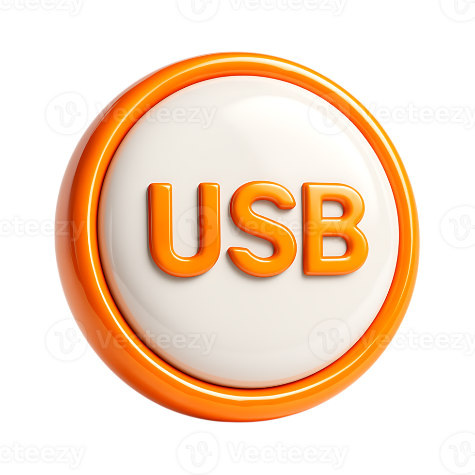 Orange usb button icon isolated on transparent background, representing technology and data connection Pro PNG