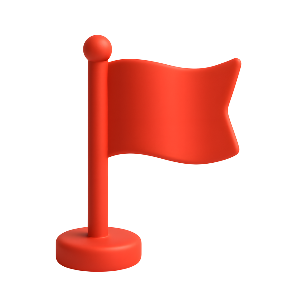 3D red flag icon with waving rectangular shape on round base and pole, isolated on transparent background Free PNG