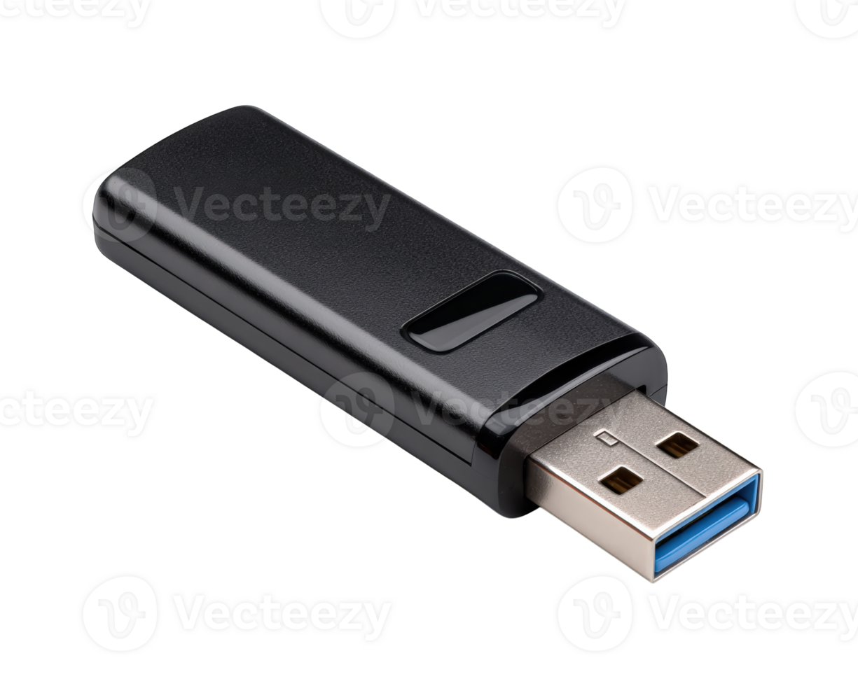 Black usb flash drive portable data storage device isolated on transparency background modern technology plastic material high fidelity digital file transfer compact and practical Pro PNG
