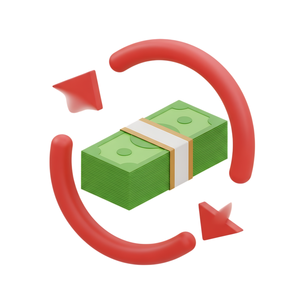 3d rendering of a stack of money with a circular arrow indicating cash flow, isolated on transparent background png