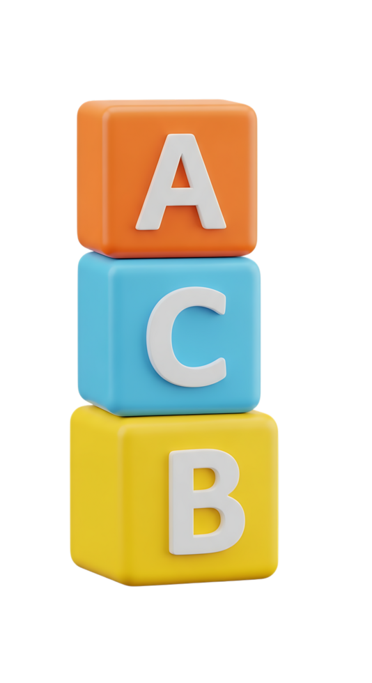 Stack of alphabet blocks with letters a, c, and b isolated on transparent background Free PNG