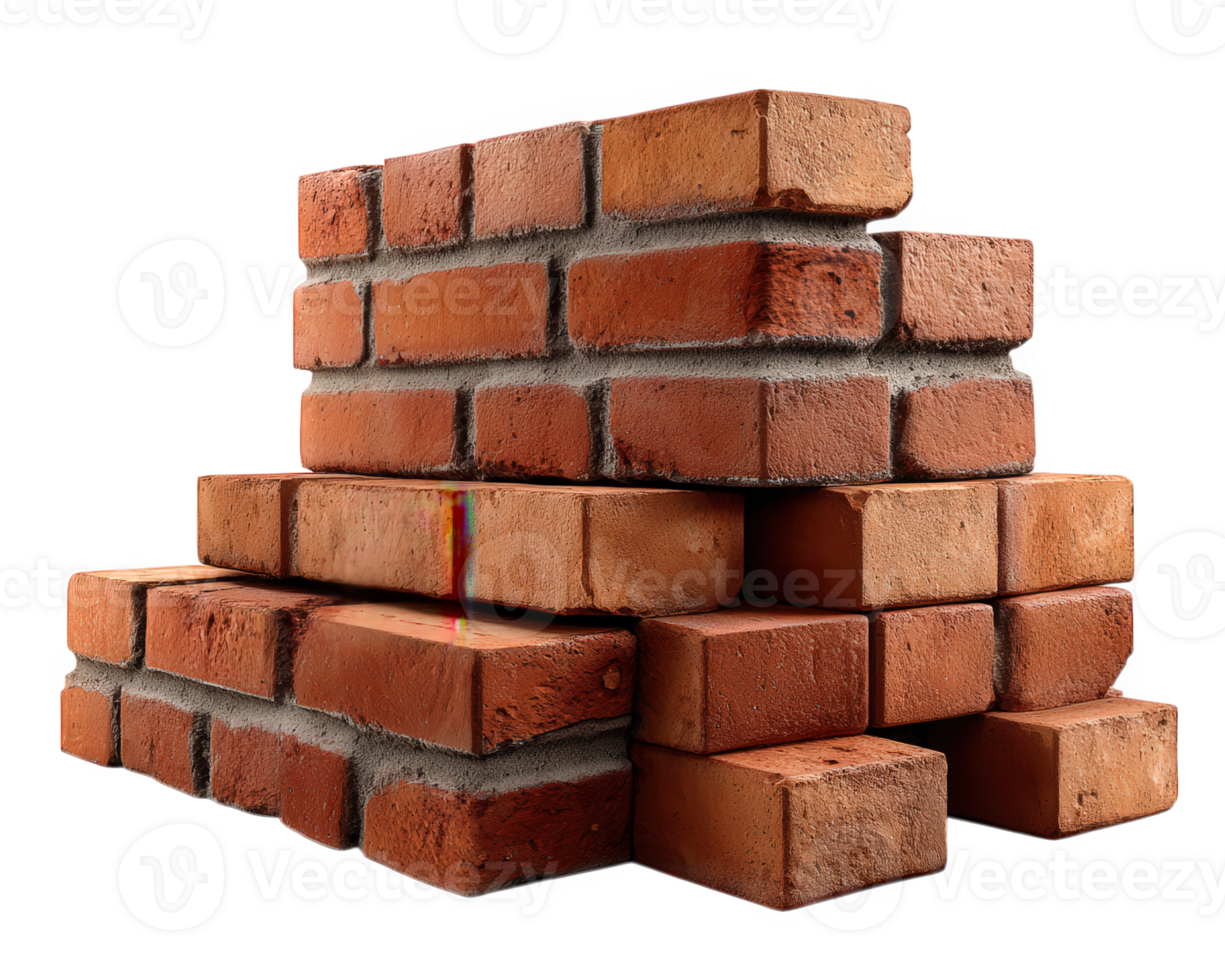 Stack of red brick building material construction element isolated rough texture masonry architecture rustic durable strong Pro PNG