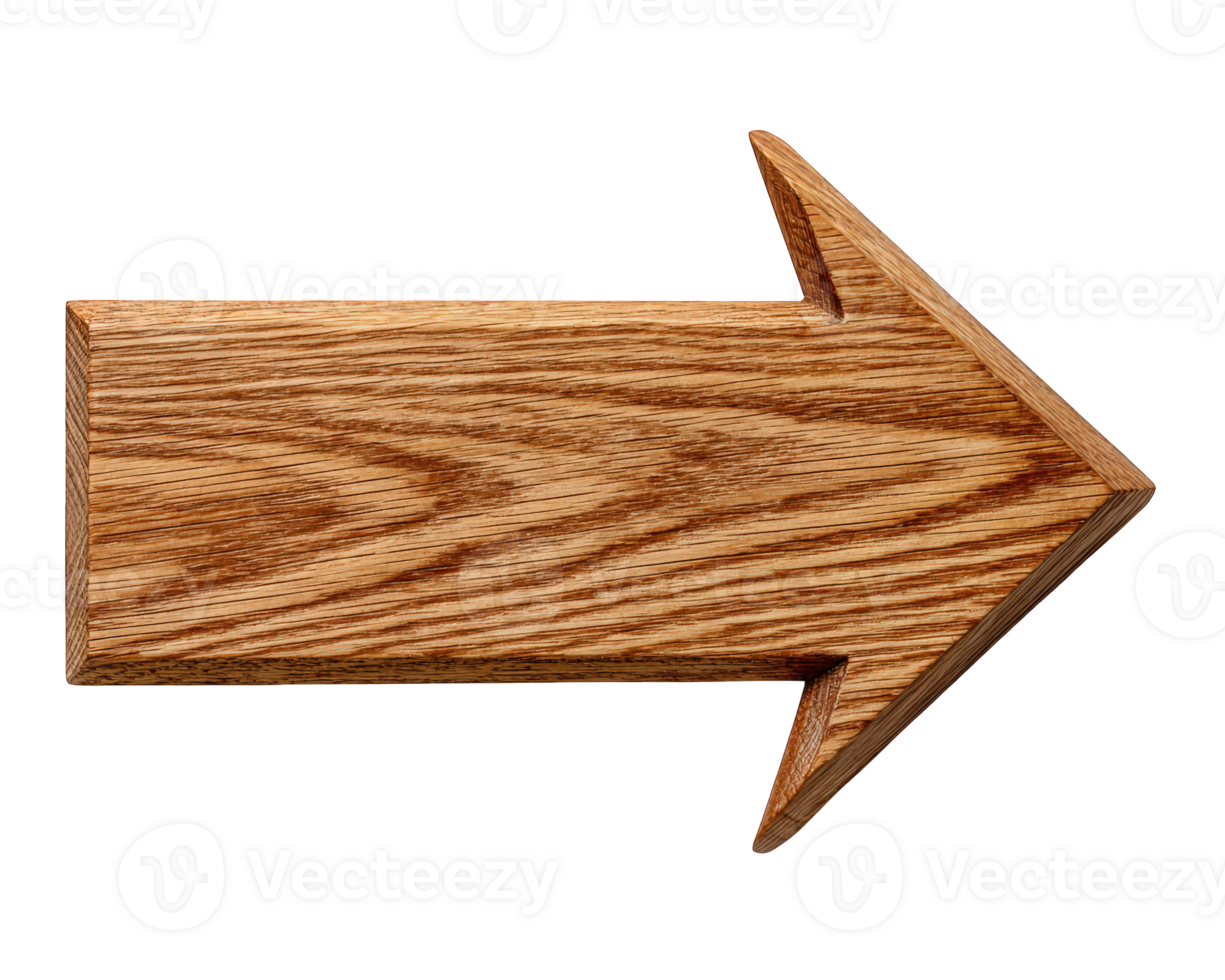 Wooden arrow right direction straight side isolated on transparency background natural texture object simple design navigation rustic decorative guidance Pro PNG