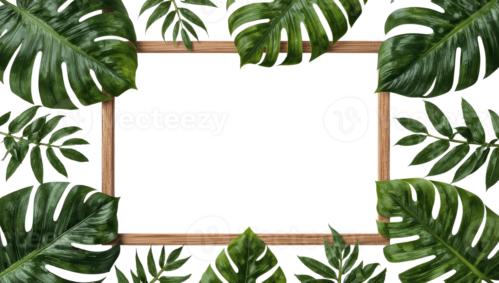 Tropical leaves frame with empty space for text, isolated on a transparent layer ideal for summer Pro PNG