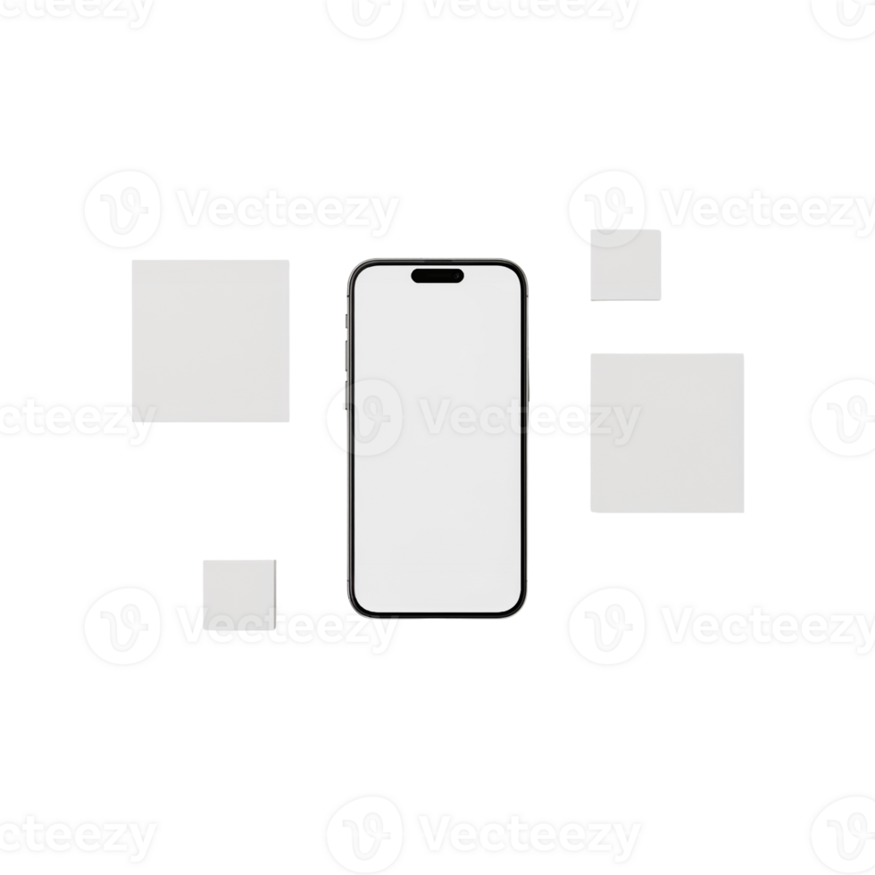 Sleek smartphone mockup with floating elements showcasing app interface design and modern Pro PNG