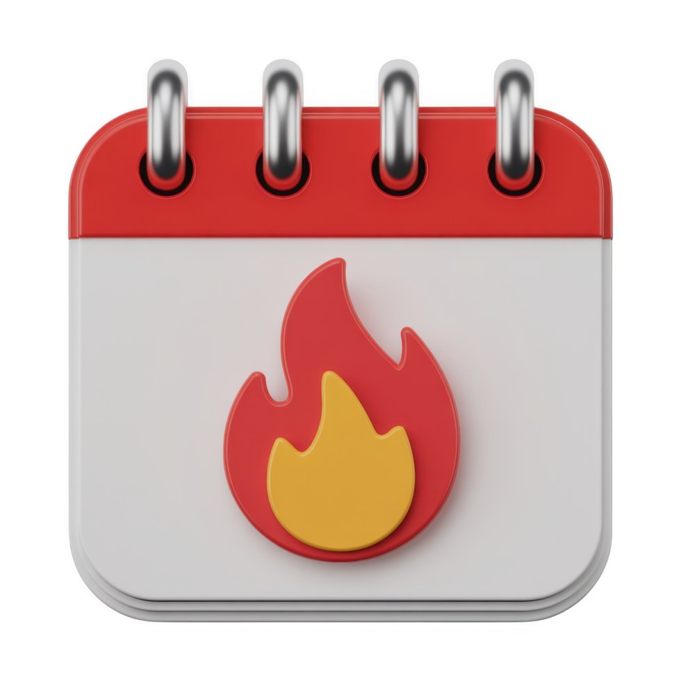A 3d render of a calendar icon with a fire symbol, representing hot events and important dates, isolated on transparent background Free PNG