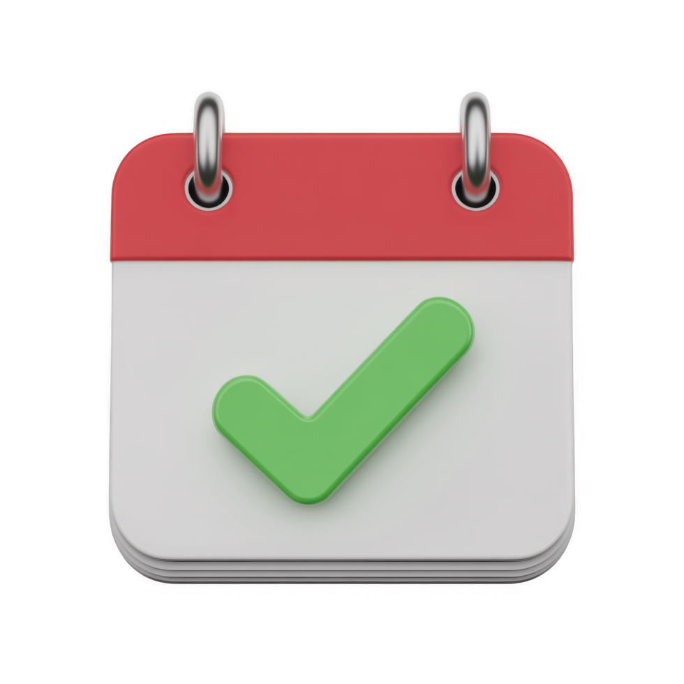 3d rendering of a calendar with a check mark on the page isolated on transparent background, representing a scheduled event or completed task Free PNG