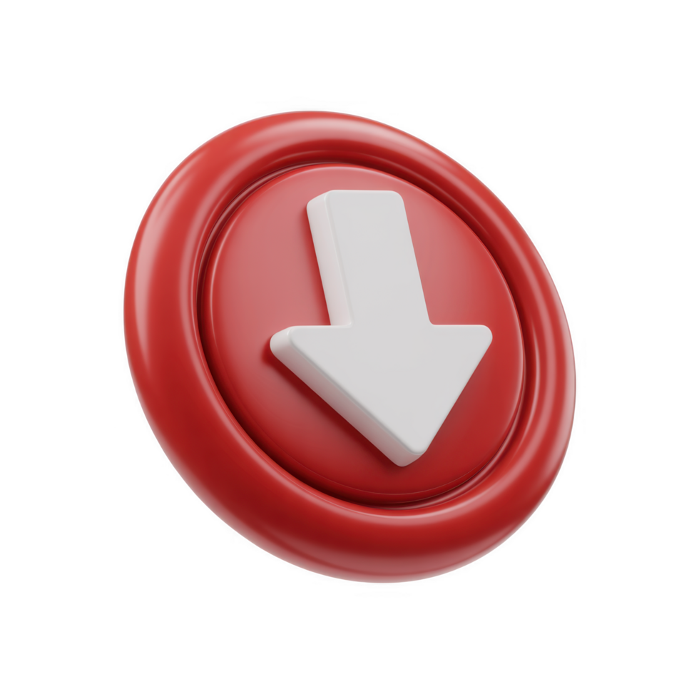 Red download button with white arrow pointing down, a simple and modern 3d render isolated on transparent background, perfect for web design png