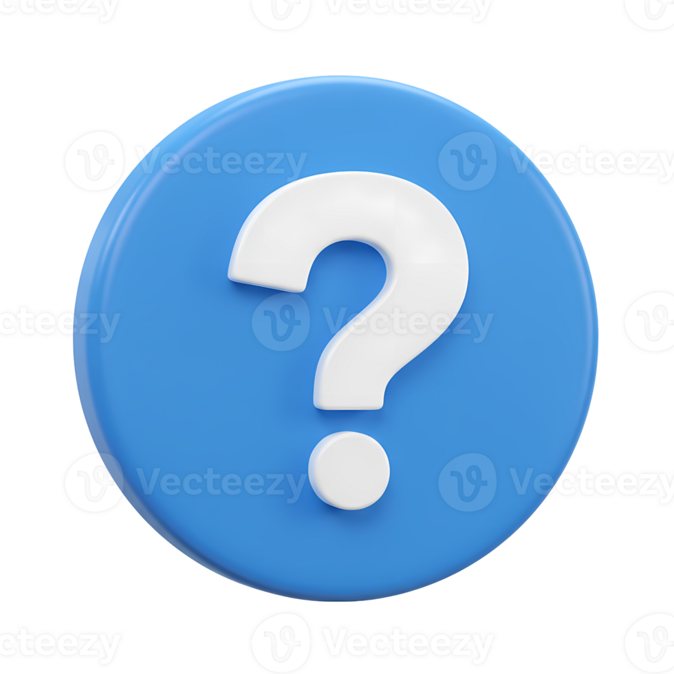 Shiny question mark rendered in white against a blue button with a transparent background for versatile use. Pro PNG