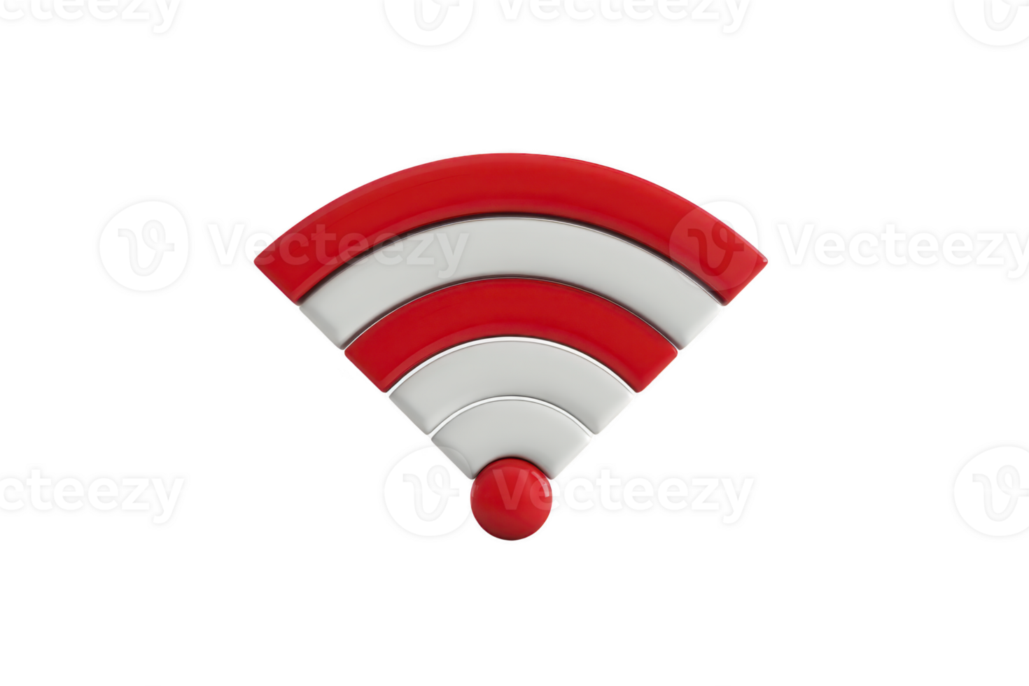 Red and white Wi Fi symbol with glossy finish, representing wireless connectivity and internet access. design is simple and modern, conveying sense of technology and communication Pro PNG
