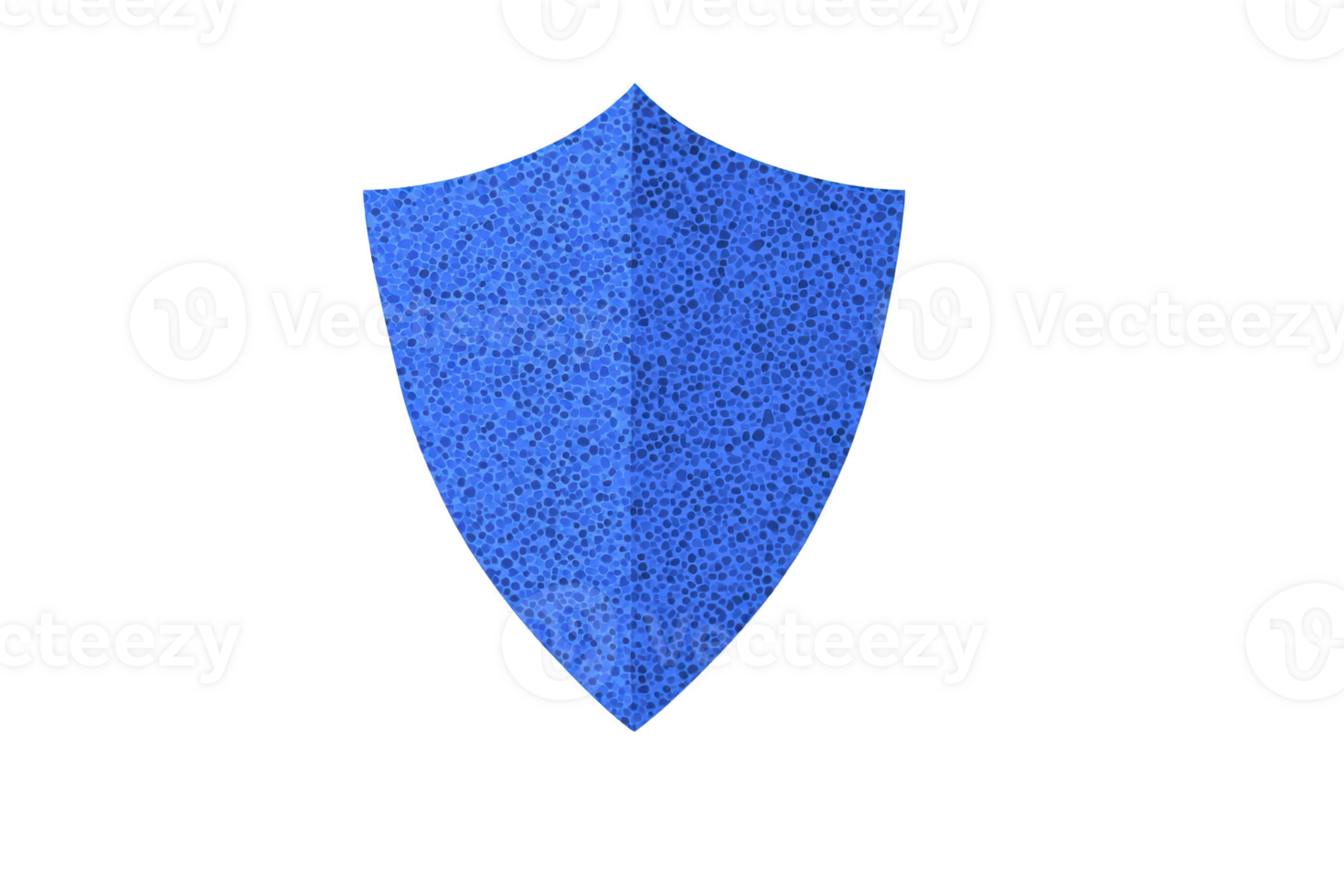 Blue shield with textured surface stands out against transparent background, symbolizing protection and security. shield design is simple yet effective, conveying sense of safety and defense Pro PNG