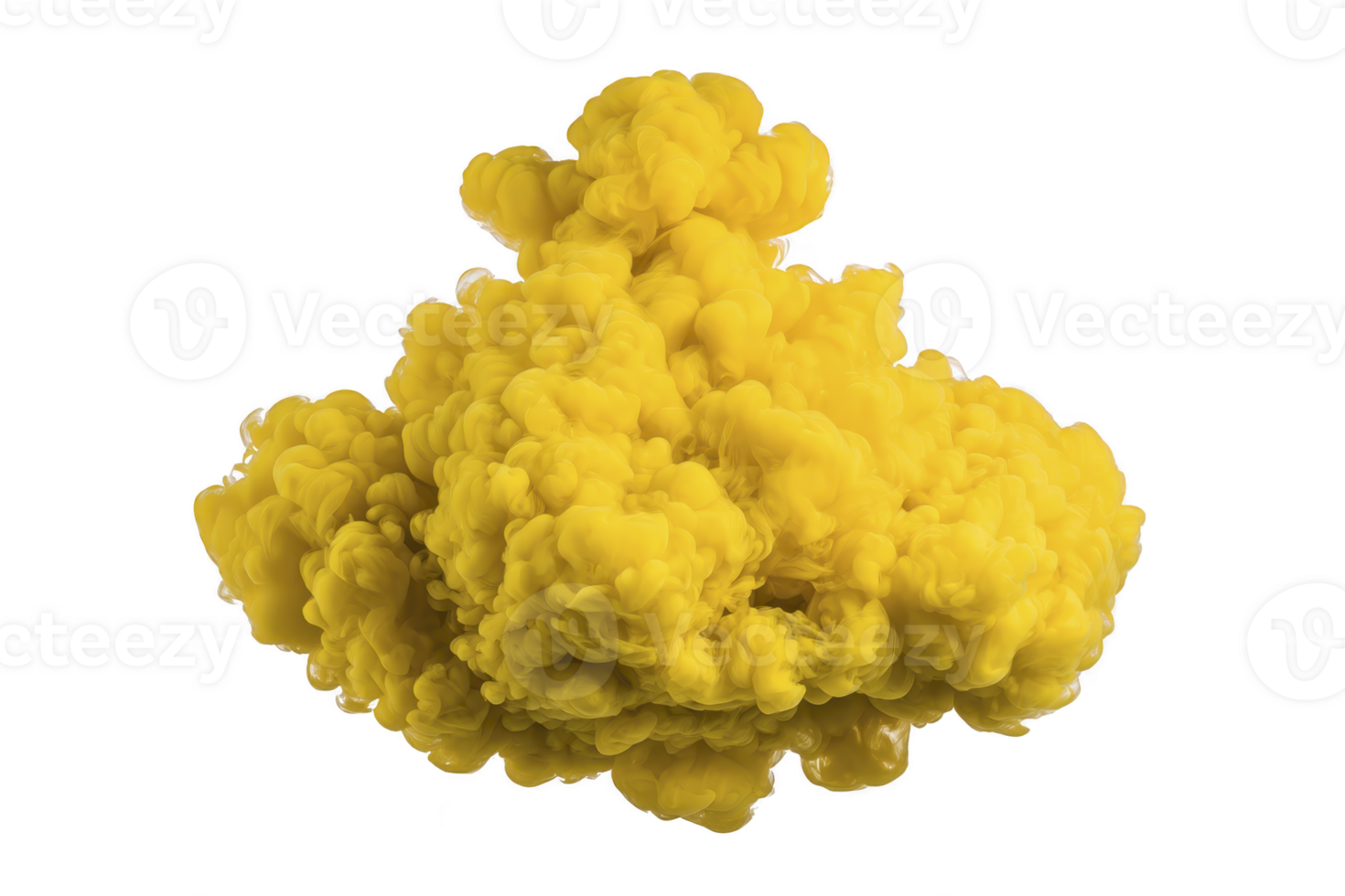 Vibrant yellow cloud of smoke billows against transparency background, creating dynamic and energetic visual effect. swirling patterns and bright color evoke sense of movement and creativity Pro PNG