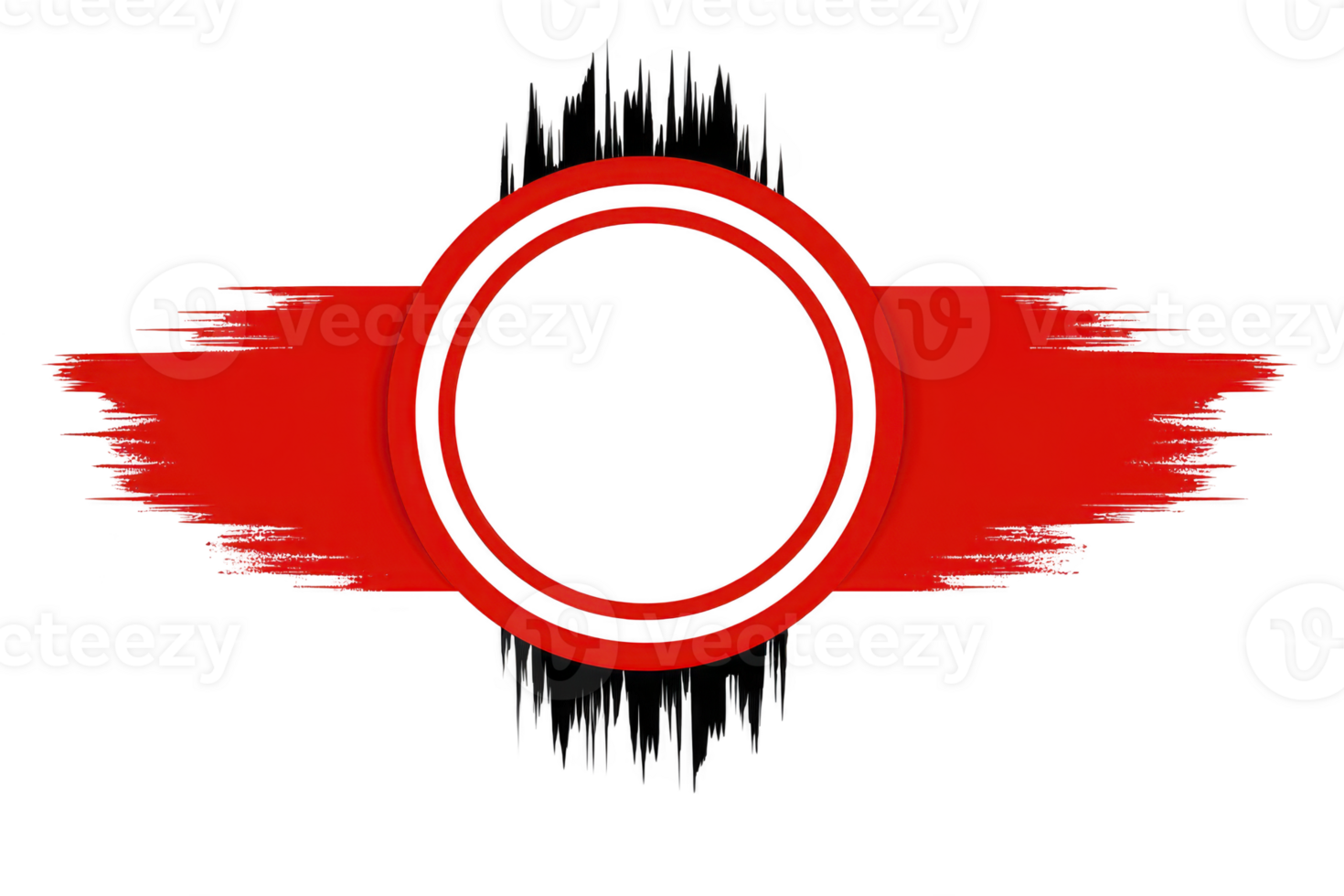 Bold red and black circular design with grunge texture, featuring central circle and horizontal brush strokes extending outward, creating dynamic and edgy visual effect Pro PNG