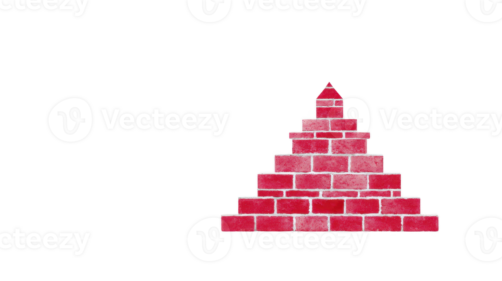 Small red brick pyramid stands against transparency background, showcasing simple yet striking geometric design. bricks are neatly stacked, creating symmetrical and balanced structure Pro PNG