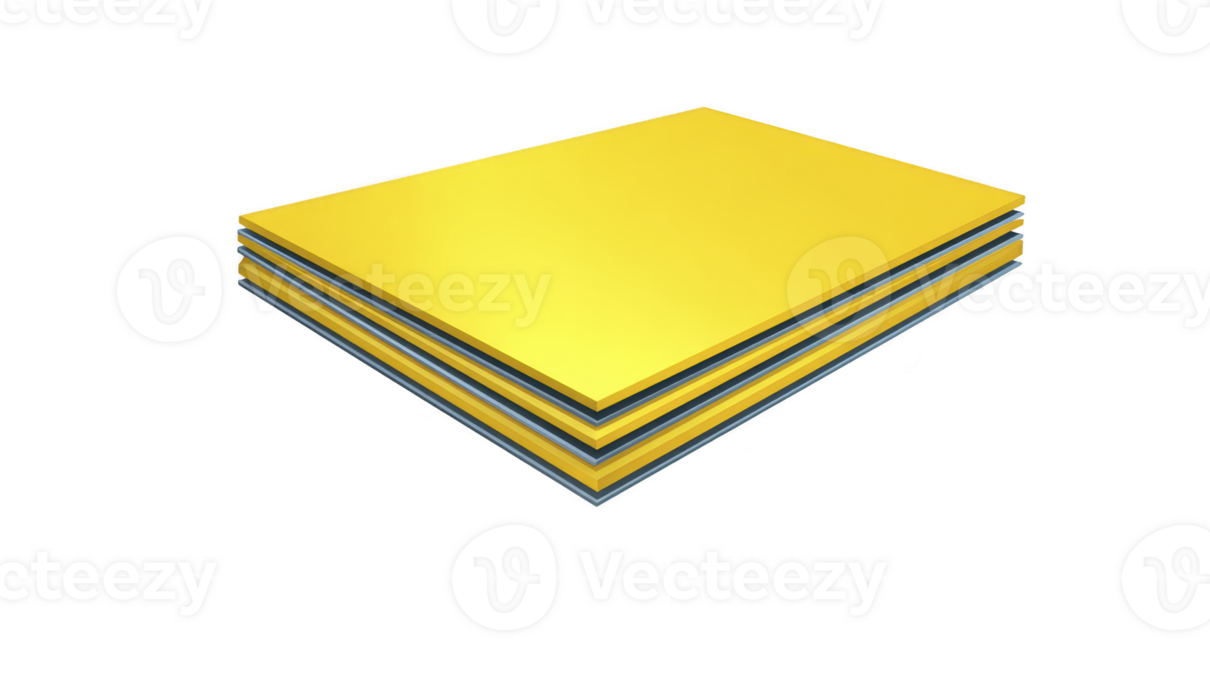 Stack of vibrant yellow sheets is displayed, showcasing smooth and glossy surface. layers are neatly arranged, creating visually appealing composition that evokes sense of creativity and design Pro PNG