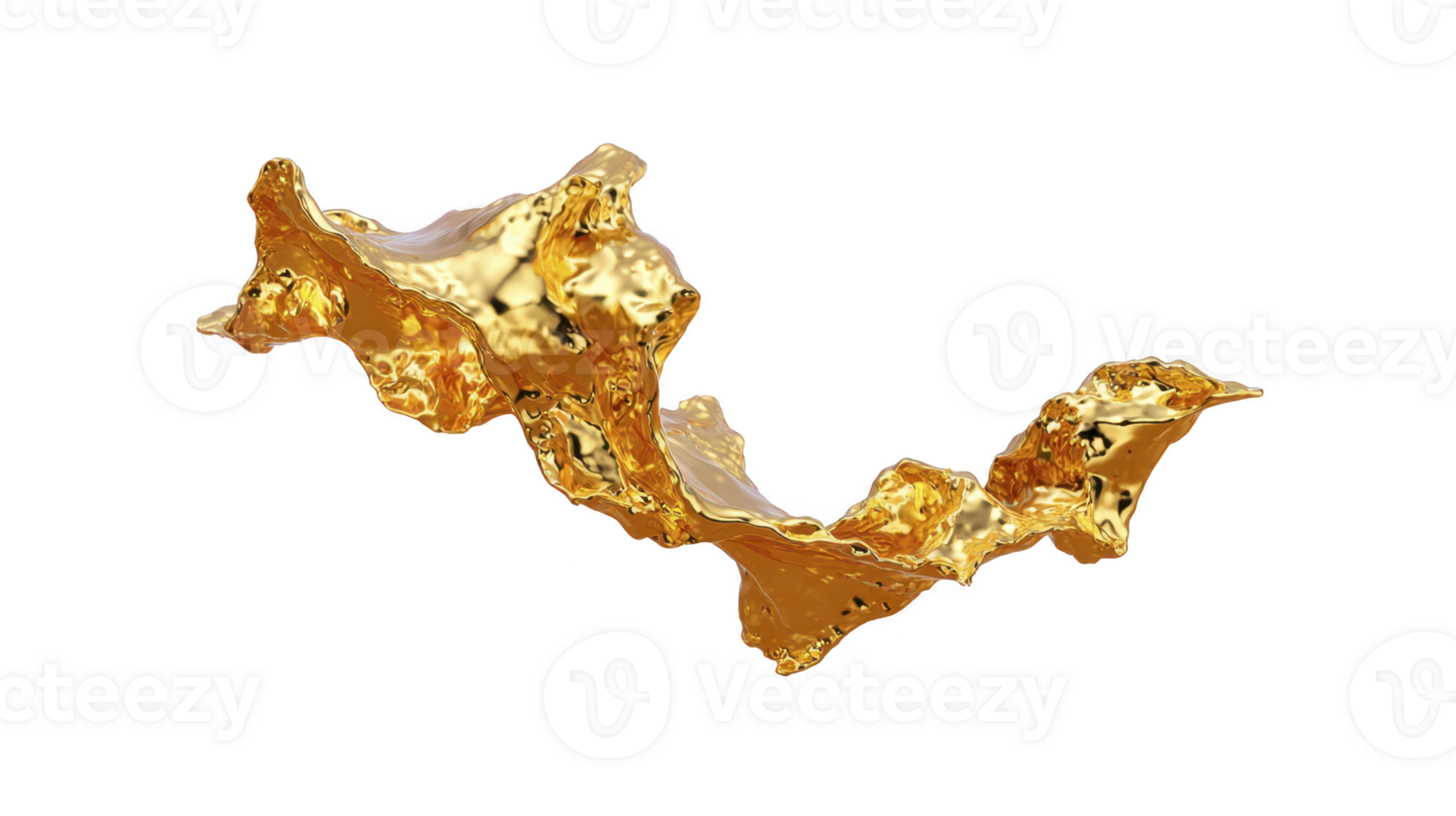 Shiny, abstract sculpture resembling flowing liquid gold, showcasing smooth curves and sharp edges, creating dynamic and elegant visual effect. golden surface reflects light beautifully Pro PNG