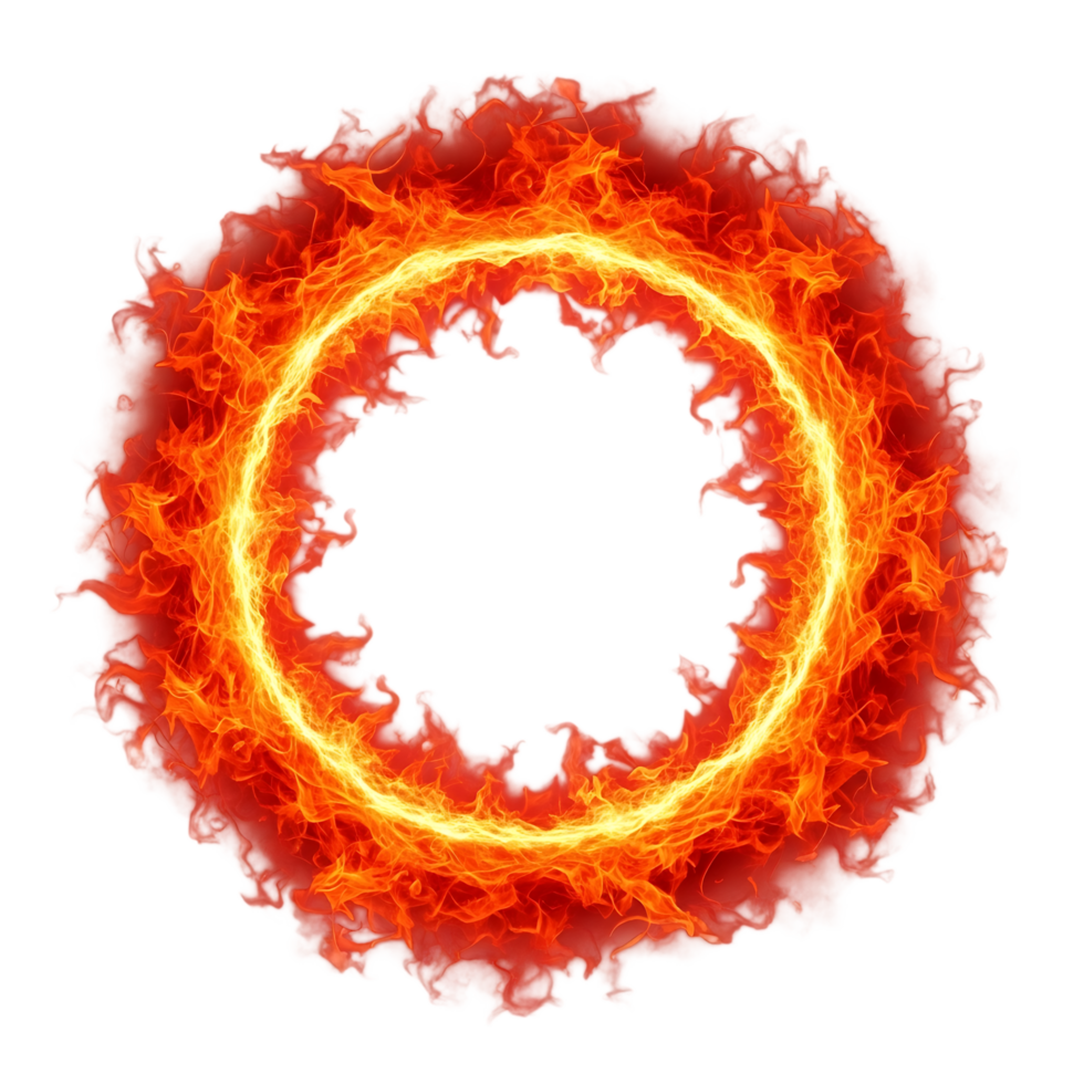 A fiery ring of flames isolated on transparent background, radiating intense heat and light, creating a captivating and dynamic visual effect png