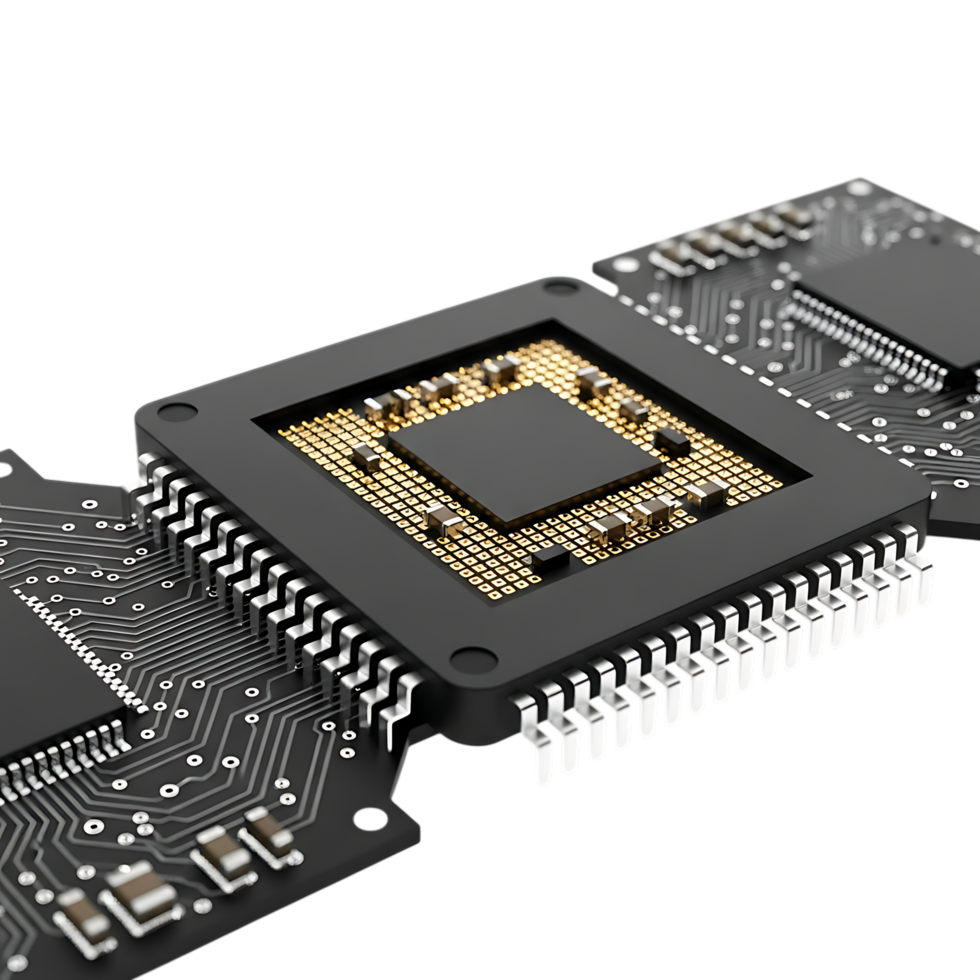 Closeup of a modern computer processor with golden pins isolated on transparent background, showcasing intricate design and advanced technology Free PNG