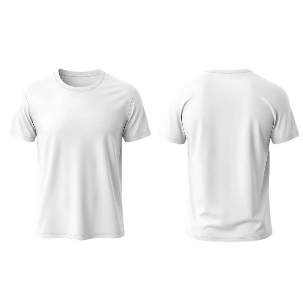Front and back view of a plain white tshirt isolated on transparent background, showcasing its simple design and versatile style for casual wear png