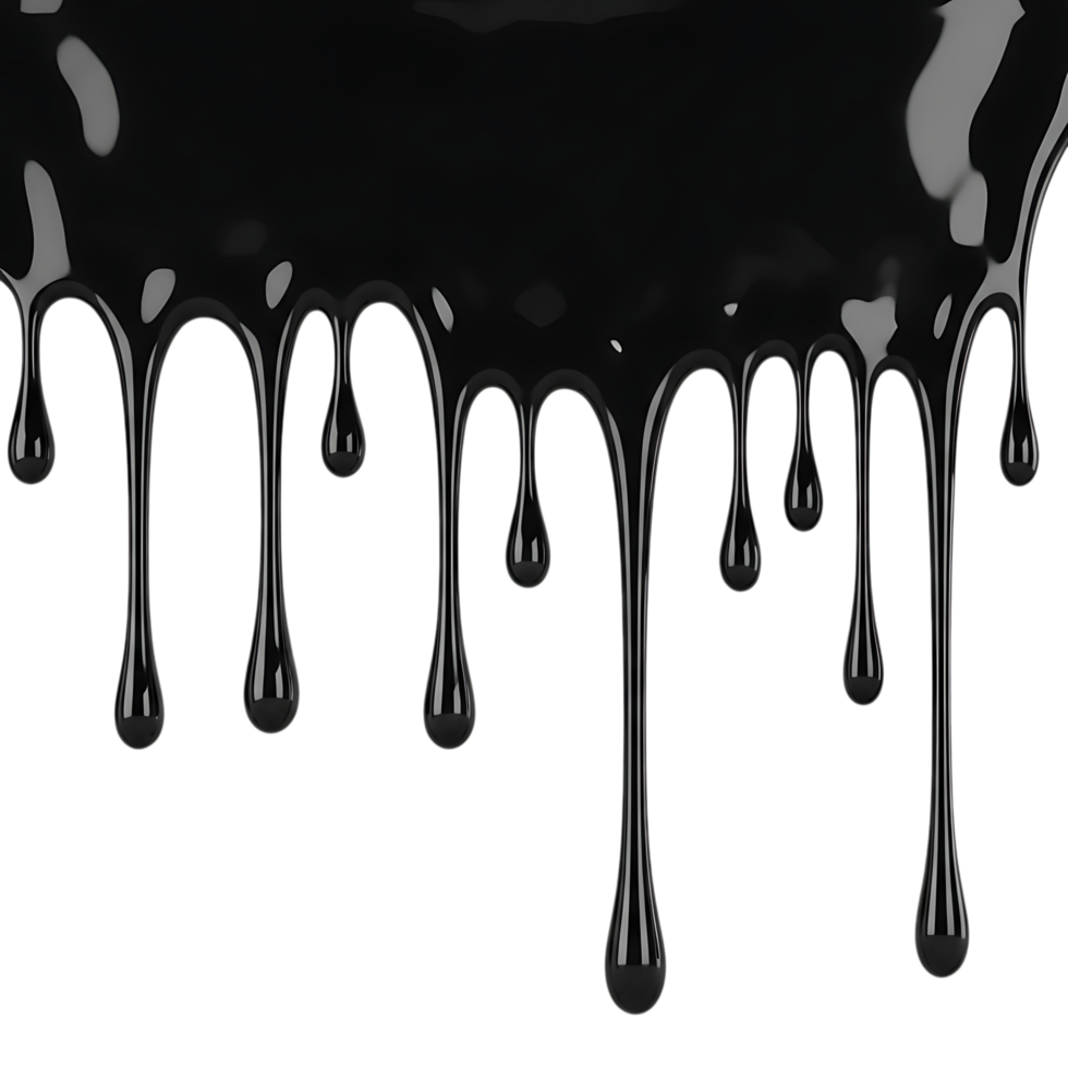 Black paint dripping down isolated on transparent background, creating a visually striking and dramatic effect with its glossy texture and smooth flow Free PNG