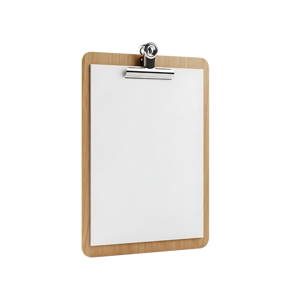 Clipboard with blank white paper isolated on transparent background, perfect for notes, reminders, or displaying important documents in a clean and organized way png