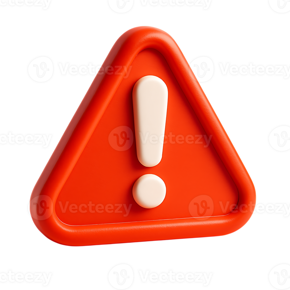 A 3d render of a red warning triangle icon, isolated on transparent background Pro PNG
