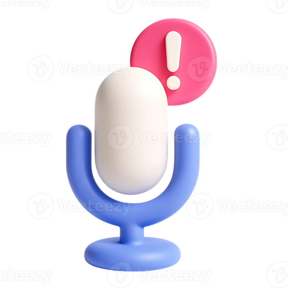 3d rendering of a microphone icon with a pink notification alert isolated on transparent background Pro PNG