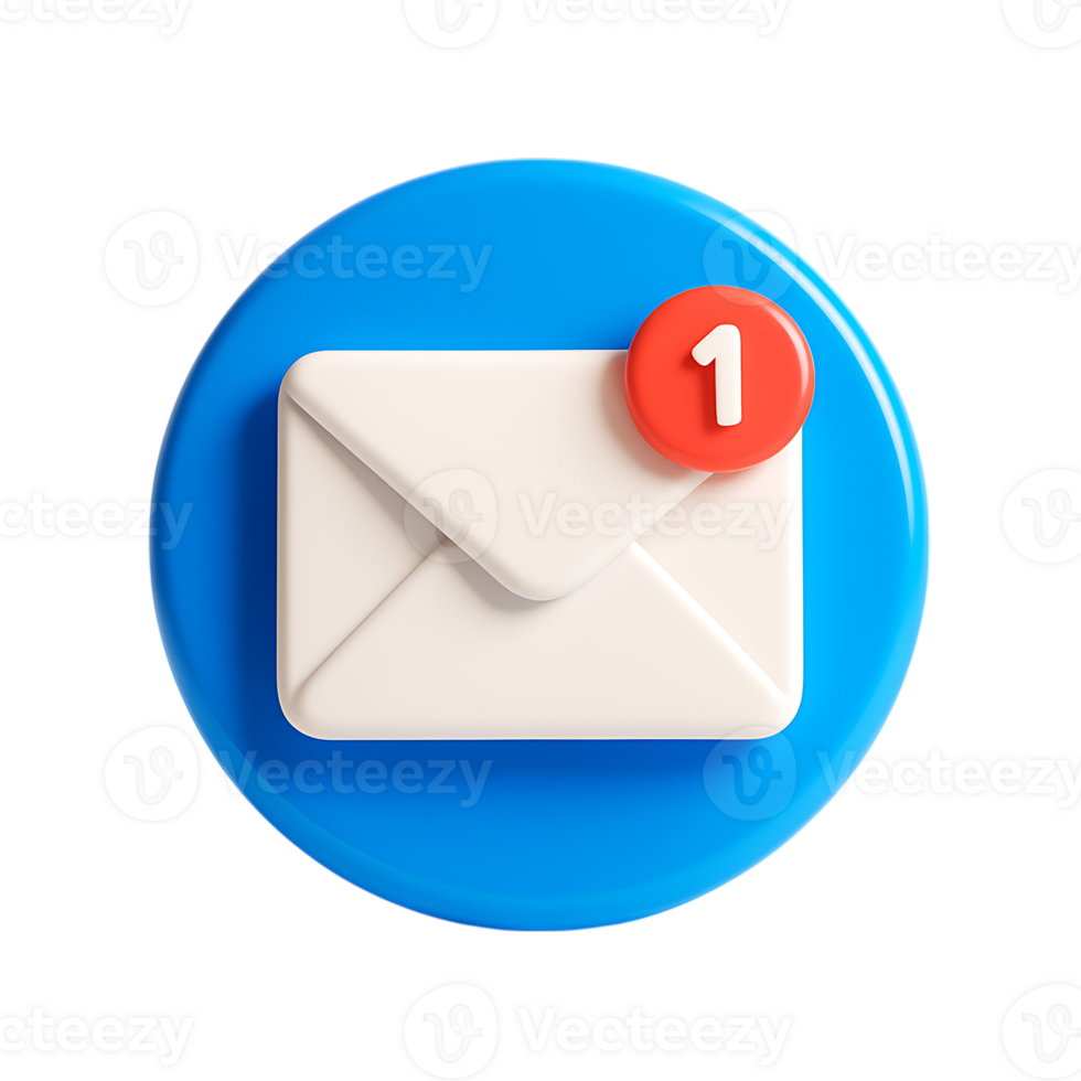 A 3d render of an email icon with a notification of one new message, isolated on transparent background Pro PNG