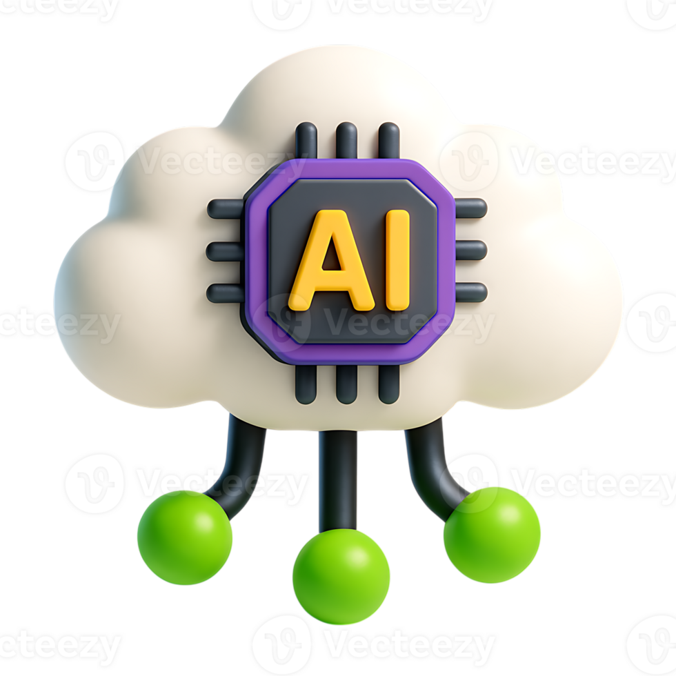 3d render of an ai cloud computing icon isolated on transparent background Pro PNG