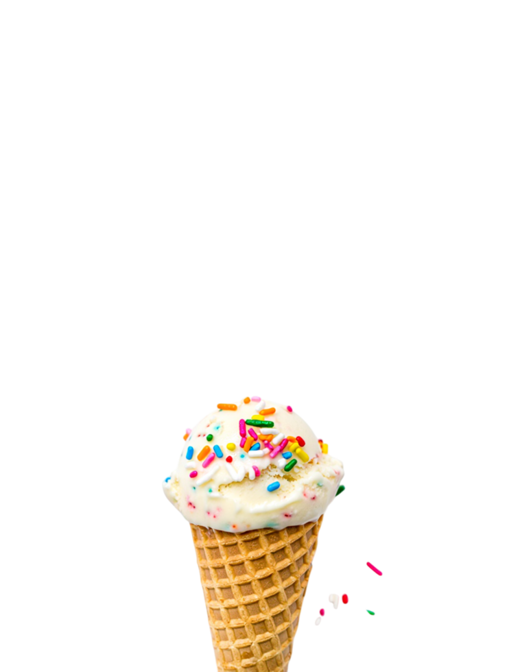 A single vanilla ice cream cone isolated on transparent background is generously covered in colorful sprinkles, creating a festive and tempting dessert png