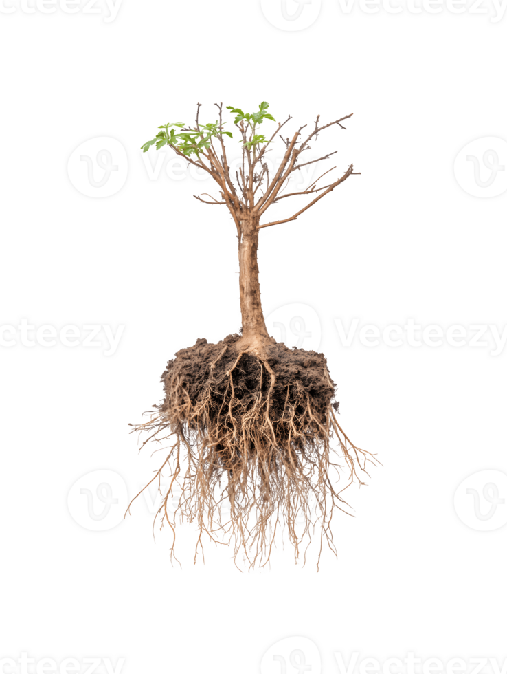 Tree with Extensive Root System and Branches, Isolated on a Transparent Background Pro PNG