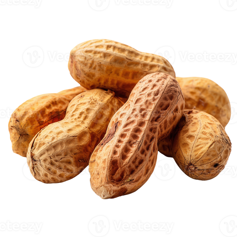 Peanuts in their shells are piled together, displaying a rough, textured surface in a light tan color on transparent background. Pro PNG