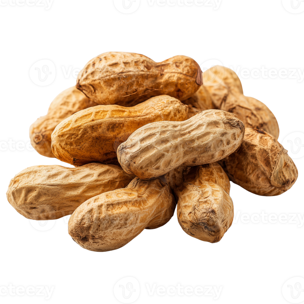 Peanuts in shells are piled together, displaying a rough, textured surface in a light tan color on transparent background.. Pro PNG