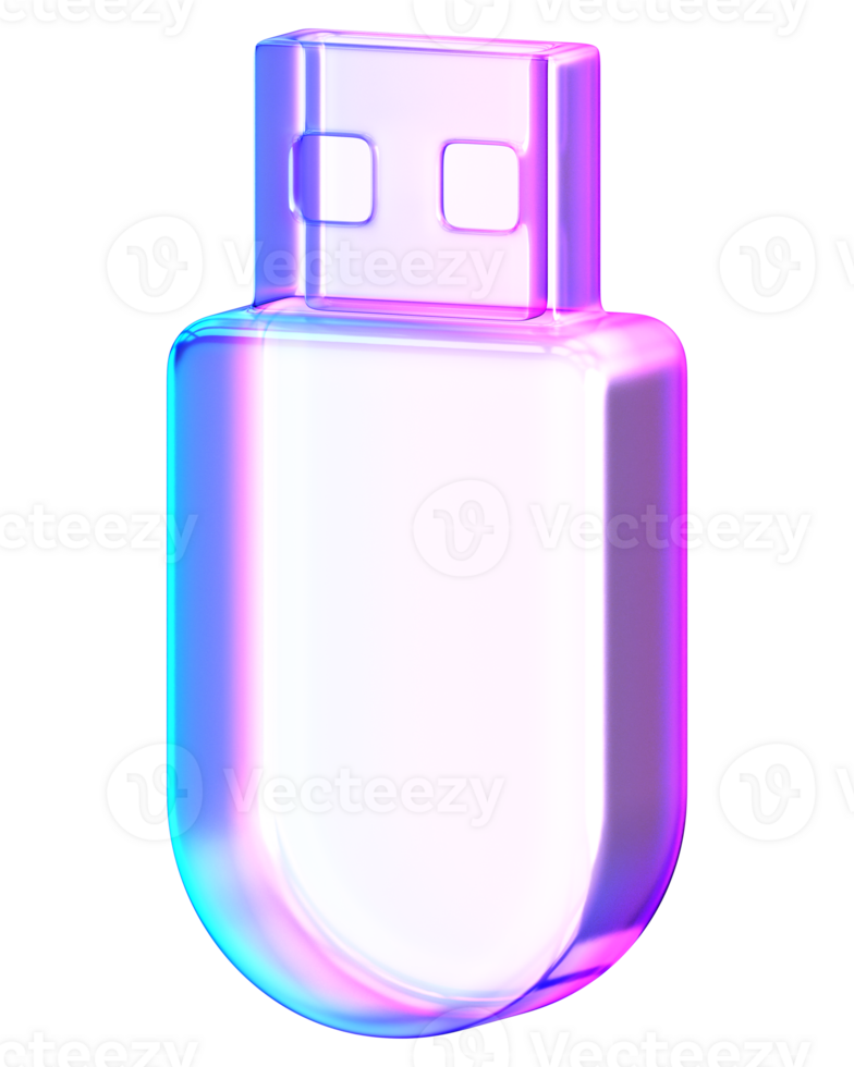 3D glassmorphism USB stick with gradient glossy finish. Minimal storage device shape for technology, data, and digital concepts Pro PNG