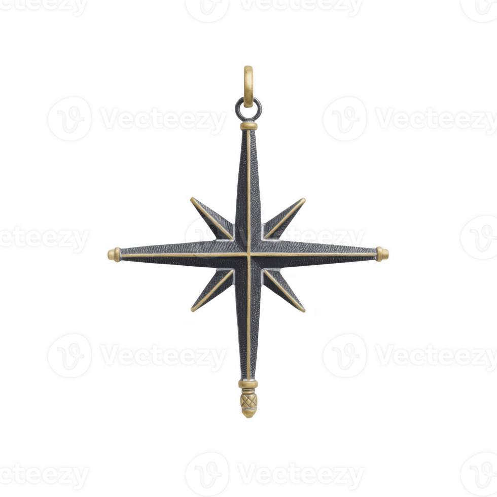 Star shaped pendant with metallic finish and intricate design, featuring central point and extending rays. pendant has loop for attaching to chain, combining elegance with celestial theme Pro PNG