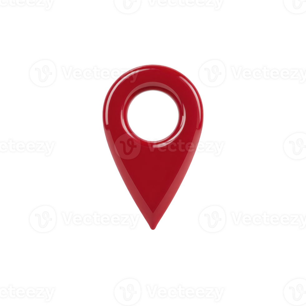 Glossy red location pin icon with hole in center, symbolizing navigation and mapping. sleek design is ideal for digital maps and GPS applications Pro PNG