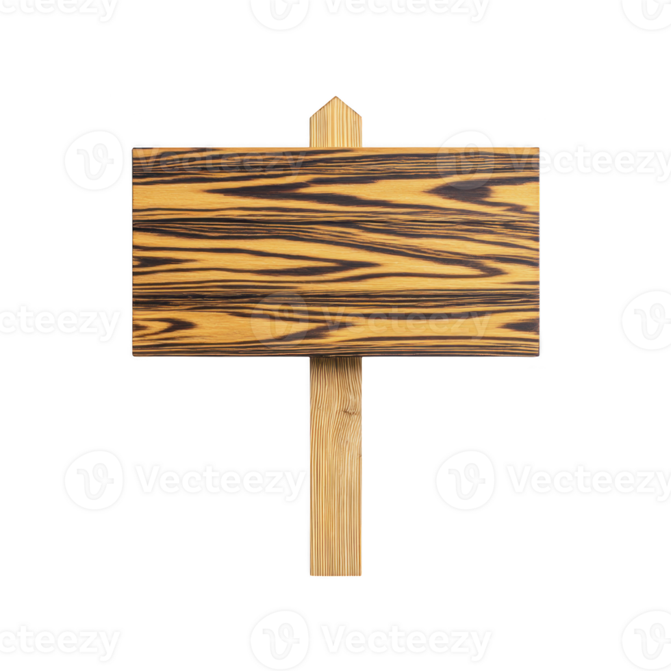 Wooden sign with natural grain pattern and rectangular shape is mounted on wooden post, isolated on transparency background. sign has rustic appearance, suitable for outdoor or garden use Pro PNG