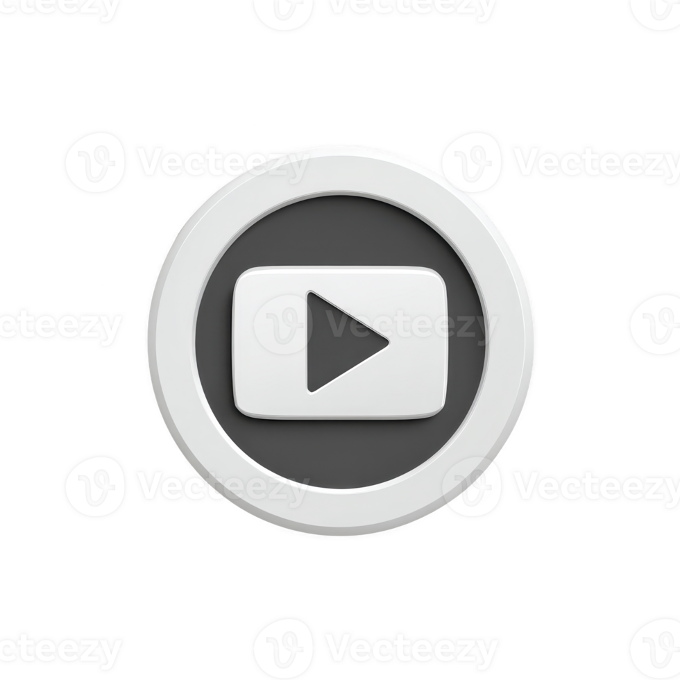 3D white and gray play button icon with circular design, symbolizing media or playback. button is centered within circular frame, giving modern and sleek appearance Pro PNG