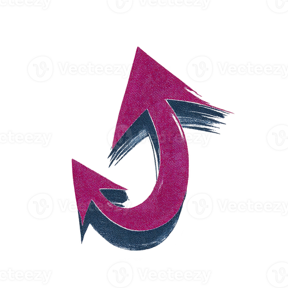 Vibrant, artistic arrow design featuring bold pink and blue color scheme, with textured, brushstroke style. arrow curves dynamically, creating sense of movement and energy Pro PNG