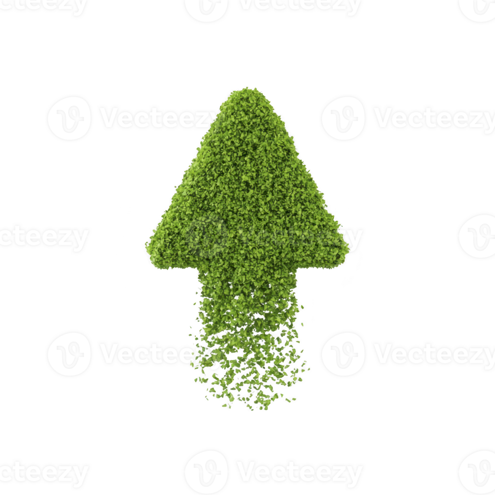 Green arrow made of lush foliage points upward, symbolizing growth and progress. bottom of arrow appears to disintegrate, adding dynamic effect Pro PNG